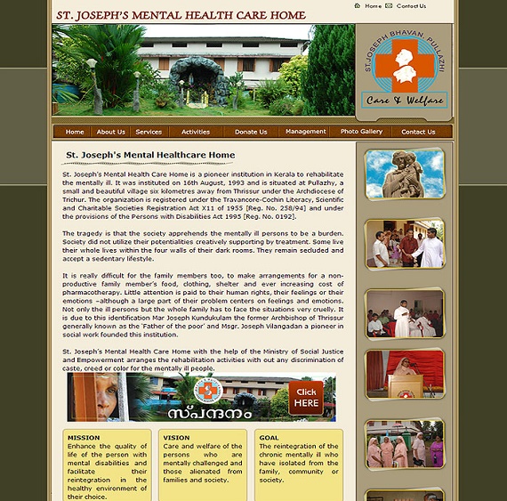 St. Joseph’s Mental Health Care Home is an institution to rehabilitate the mentally ill persons. This is the pioneer of this sort in Kerala. It is Instituted in 16th August, 1993 by Mar Joseph Kundukulam the former Archbishop who is generally known as the “Father of the poor”. The Co Founder of this institution is Msgr. Joseph Vilangadan a pioneer in social work and charity based activities in Kerala. The fast growth of the nuclear family system, the openness to the global system of the life, the approach to the new way of life i.e., the pragmatism and utilitarianism, the change in the morality and other values of life, etc… made more people to face the mentally illness. The world Health Organization had announced that approximately the two fifth of the Total population are facing this illness. So there are persons who live in the houses, alienated, separated, unwanted and without any support. There are a many people who have no abode and caretaker. The social stigma prevailing among the so-called literate and well educated Keralites does not allow the people to make marriage relations and any other sort. Not only the ill persons but the whole family itself has to face these situations very cruelly. It is due to this identification, the founders erected this institution on the ground that the ill persons were burden to the family. So the founding of this institution is important for “a decent living” of the mentally ill persons.